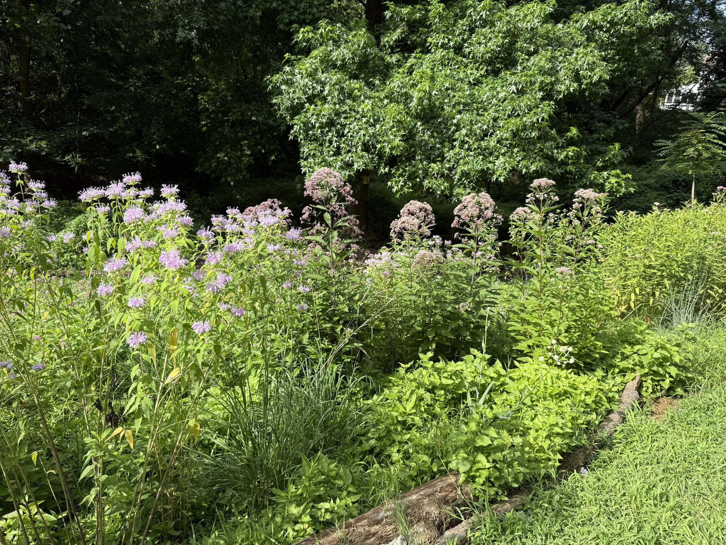 In addition to the meadow, we have expanded our work by restoring the wooded lowland habitat at the back of the site. We are currently in the process of removing invasive privet, Japanese honeysuckle, and oriental bittersweet and replanting with native ferns, irises, and other wet-tolerant native understory plants.